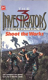 1. Terror Castle 2. Stuttering Parrot 3. Whispering Mummy 4. Green Ghost 5. Vanishing Treasure 6. Skeleton Island 7. Fiery Eye 8. Silver Spider 9. Screaming Clock 10. Moaning Cave 11. Talking Skull 12. Laughing Shadow 13. Crooked Cat 14. Coughing Dragon 15. Flaming Footprints 16. Nervous Lion 17. Singing Serpent 18. Shrinking House 19. Phantom Lake 20. Monster Mountain 21. Haunted Mirror 22. Dead Man's Riddle 23. Invisible Dog 24. Death Trap Mine 25. Dancing Devil 26. Headless Horse 27. Magic Circle 28. Deadly Double 29. Sinister Scarecrow 30. Shark Reef 31. Scar-Faced Beggar 32. Blazing Cliffs 33. Purple Pirate 34. Wandering Cave Man 35. Kidnapped Whale 36. Missing Mermaid 37. Two-Toed Pigeon 38. Smashing Glass 39. Trail of Terror 40. Rogues' Reunion 41. Creep-Show Crooks 42. Wreckers' Rock 43. Cranky Collector Book of Mystery Puzzles Find Your Fate 1. Weeping Coffin 2. Dancing Dinosaur 7. House of Horrors 8. Savage Statue Crimebusters 1. Hot Wheels 2. Murder To Go 3. Rough Stuff 4. Funny Business 5. An Ear For Danger 6. Thriller Diller 7. Reel Trouble 8. Shoot the Works 9. Foul Play 10. Long Shot 11. Fatal Error