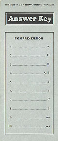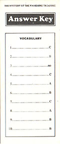 -- Both Answer Key cards contain an ISBN 0-394-13513. This is not the ISBN for the GLB Edition of Vanishing Treasure; it is probably the ISBN of the cards themselves, but I can find no record of it in the Library of Congress.