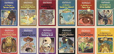 them on book store shelves as part of the Alfred Hitchcock Mystery Series, there was a silhouette of Hitchcock's