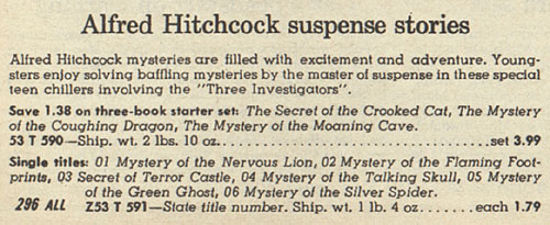 1971 catalog page in which Three Investigators and Nancy Drew books were